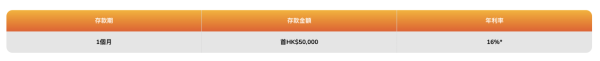 | 1個月 | 首HK$50,000 | 16% |