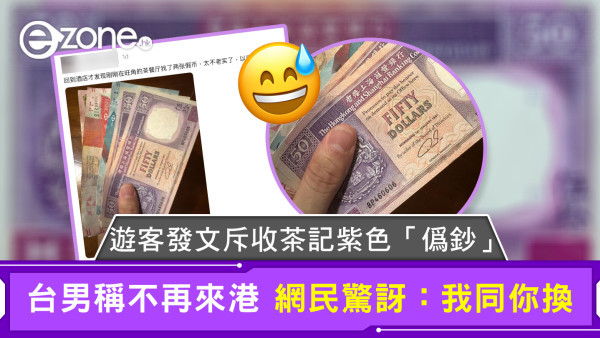茶餐廳找紫色50元紙幣 台客嬲指「偽鈔」不再來港 港人笑:我同你換